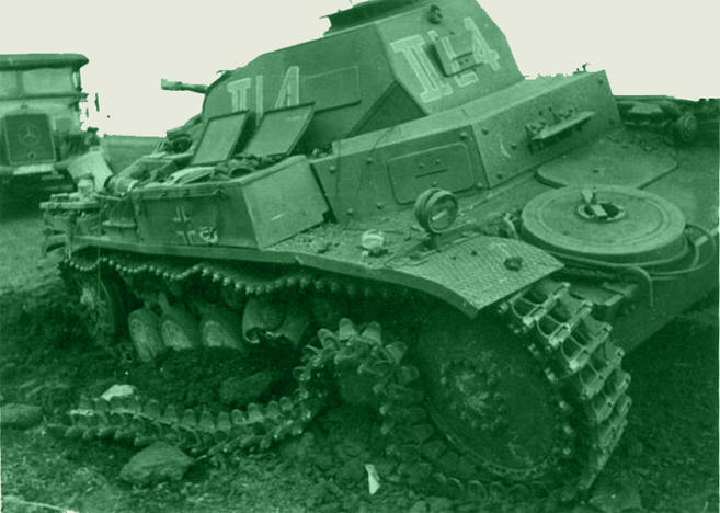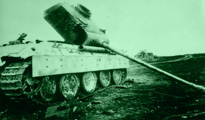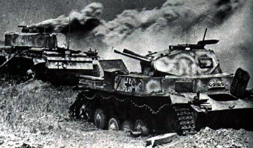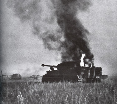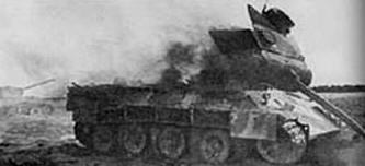 ■ Со стороны германских войск вели бой средние танки T-IV модификации G и Н (толщина брони корпуса - 80 мм, башни - 50 мм), а также тяжелые танки Т-VIE «Тигр» (толщина брони корпуса - 100 мм, башни - 110 мм). Оба танка были вооружены длинноствольными пушками калибра 75 и 88 мм, пробивавшими броню советских танков практически в любом месте на расстоянии свыше 500 м. Исключение составлял только тяжелый танк ИС-2.
